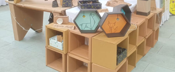 The program begins with a strong foundation in material understanding, where students explore different types of corrugated cardboard, grain direction, load-bearing capacity and structural strength. They are introduced to joinery techniques such as slot joints, tab systems and fold-based connections, enabling them to construct stable forms without relying heavily on fasteners.