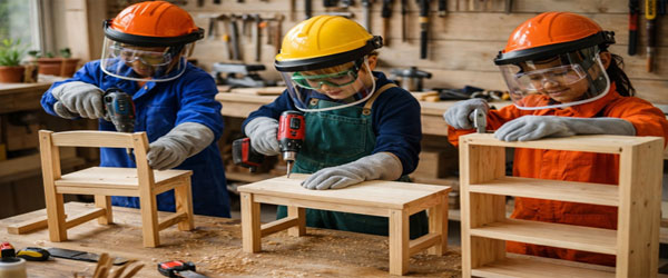The program is a hands-on, project-based learning experience where students explore the fundamentals of woodcraft, design and structural engineering by building functional furniture pieces. This program introduces learners to the World Skills competition held each year at a Global level.